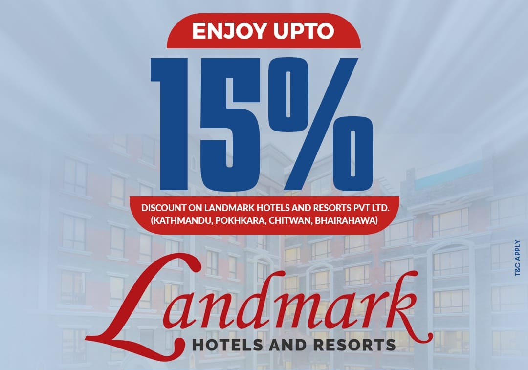 ग्लोबल आइएमई बैंकले ग्राहकले ल्याण्डमार्क होटलमा १५ प्रतिशत छुट पाउने