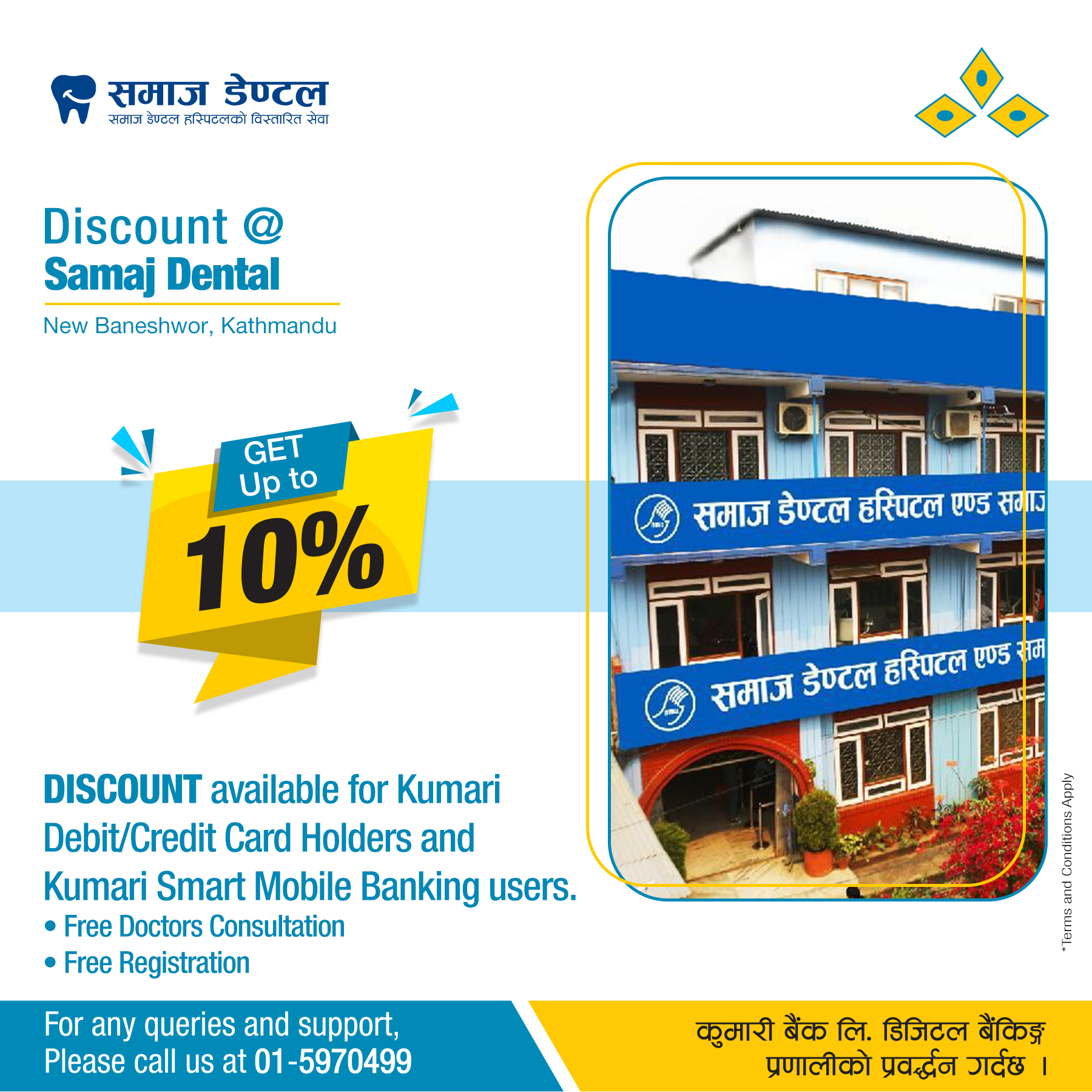 कुमारी बैंकका ग्राहकले समाज डेन्टलमा विशेष छुट पाउने